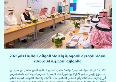 عُقد اجتماع الجمعية العمومية برئاسة صاحب السمو الملكي الأمير مشعل بن ماجد بن عبدالعزيز (رئيس مجلس الإدارة)